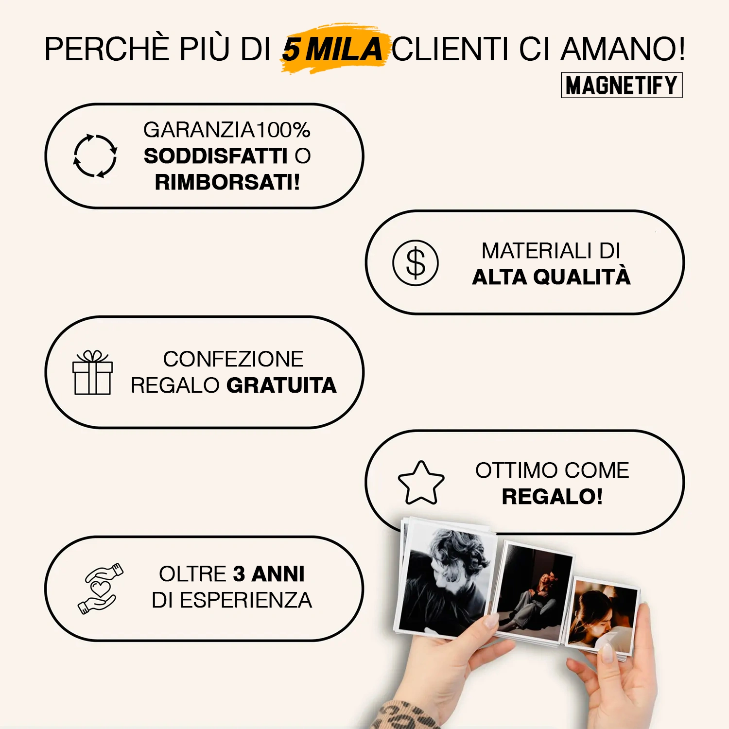 Le foto sono nitidissime e i magneti resistenti. Li ho presi per me e come regalo per la mia famiglia — tutti entusiasti!